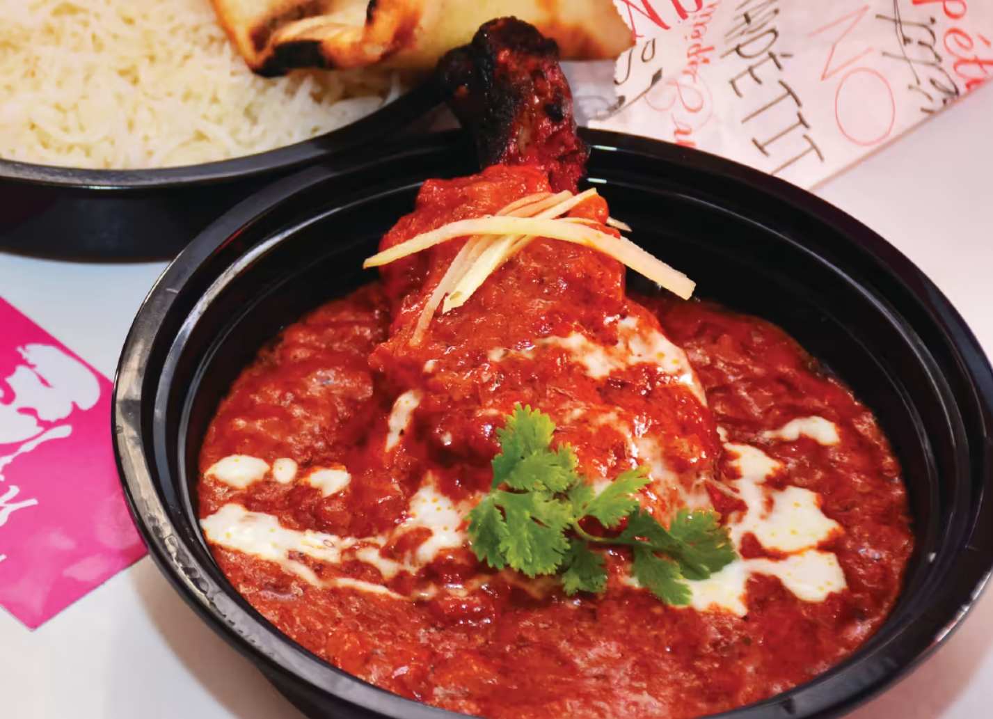 Chicken tikka dip in tomato, cream fresh and butter sauce.